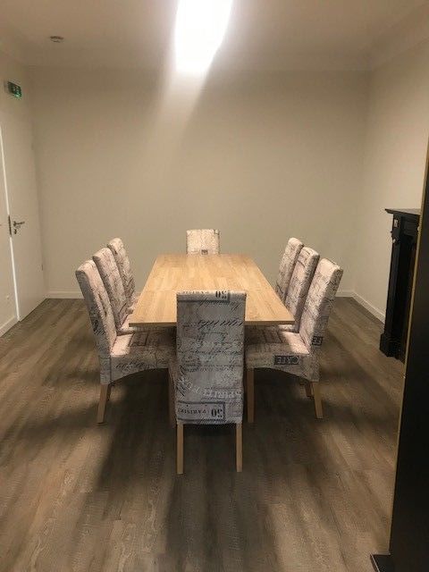 En commun une cuisine équipée, une salle à manger, trois salles de douches et une cour.