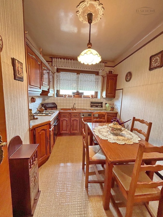 The ground floor of the house offers a variety of living spaces, including two fully equipped kitchens, a small living room that could be converted into a separate bedroom for a child, and a garage with an automatic door for a large car.