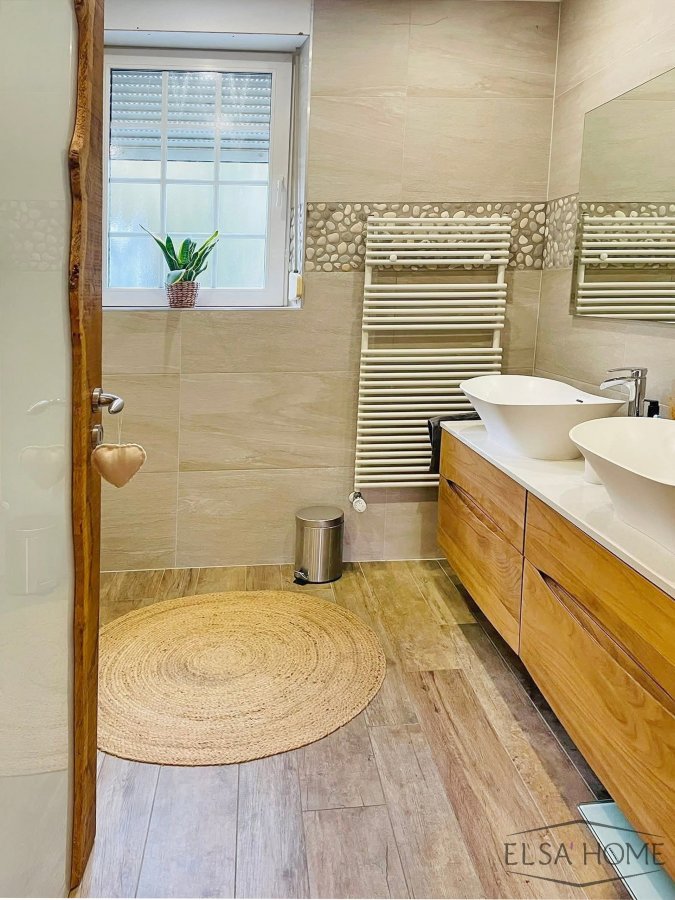À l'étage, deux chambres confortables offrent un espace de repos agréable, tandis qu'une salle de douche moderne répond aux besoins de la famille. Le dernier étage, entièrement aménagé, propose deux chambres supplémentaires et dispose déjà d'un branchement pour une salle de bains additionnelle, laissant place à différentes possibilités d'aménagement.