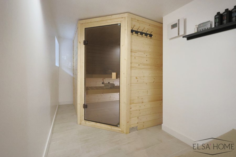 The property includes a separate WC, a vaulted stone cellar, and a private, enclosed garden with trees, offering a peaceful and secure outdoor space. The house comprises four comfortable bedrooms, including a master suite with a dressing room and an adjoining shower room, as well as an additional bathroom for the other bedrooms. A relaxation room with a shower and sauna is also available for moments of tranquility.
