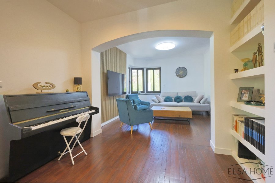 Située à Beggen, à proximité du Kirchberg, des commerces et des commodités, cette charmante maison de 1925 a su préserver son cachet d'antan tout en étant rénovée avec élégance et modernité. Son architecture authentique a été soigneusement conservée, offrant une atmosphère chaleureuse et pleine de caractère.À l'intérieur, la maison dispose d'un espace de vie spacieux avec une cuisine ouverte, moderne et fonctionnelle, qui dessert une jolie véranda lumineuse, idéale pour profiter des beaux jours. La cuisine est également en communication avec le salon, où trône un piano, créant ainsi un espace convivial et élégant pour recevoir et se détendre.