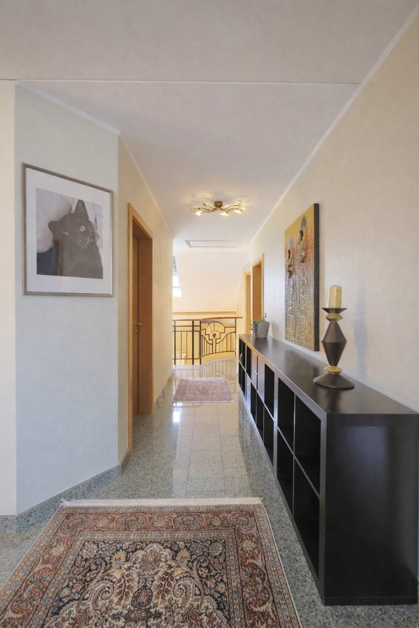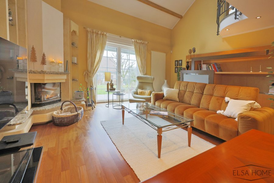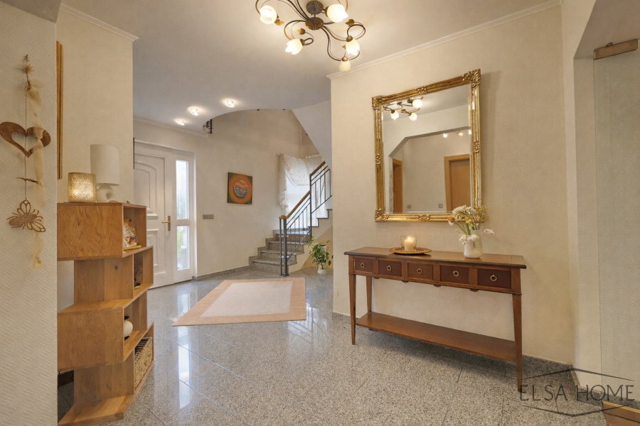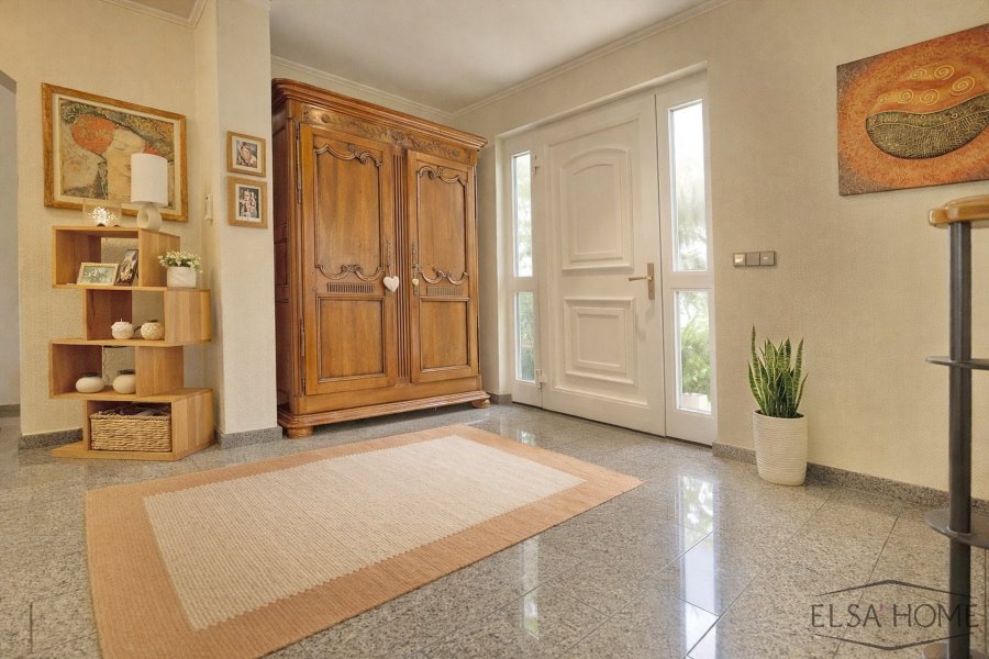 Dès l'entrée, le vaste hall procure une sensation de bien-être grâce à son espace généreux. Il dessert le rez-de-chaussée, composé d'un grand espace living-salle à manger qui s'ouvre sur une grande terrasse et un jardin fleuri, particulièrement agréable au printemps.
