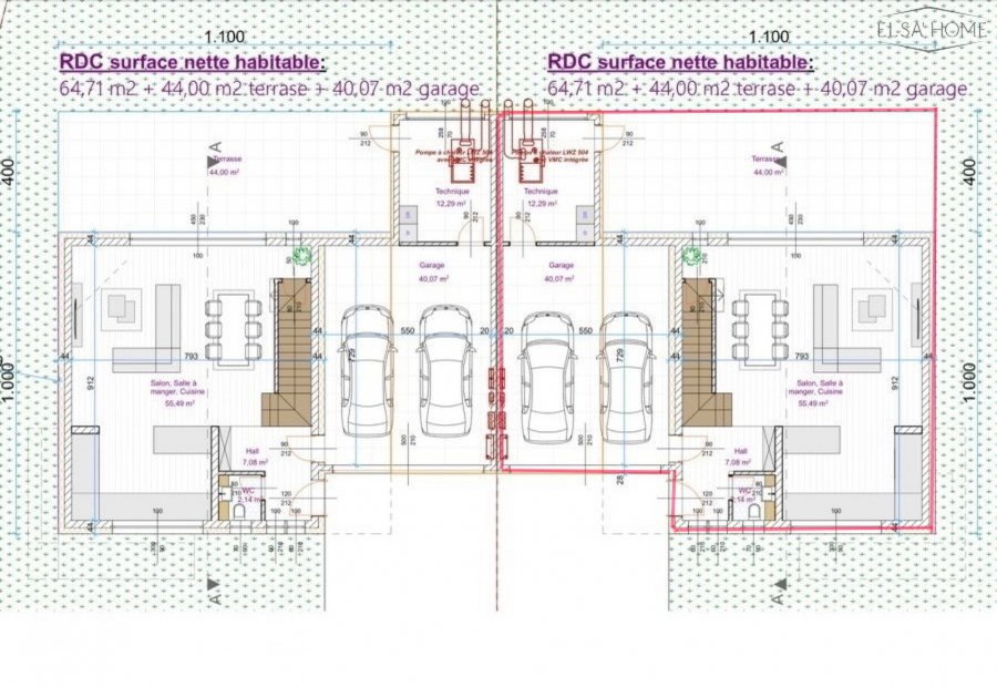 We are delighted to present a project for the construction of two semi-detached houses, connected by their respective garages. This project offers flexible interior layouts, allowing future owners to personalize their living space according to their tastes and needs.